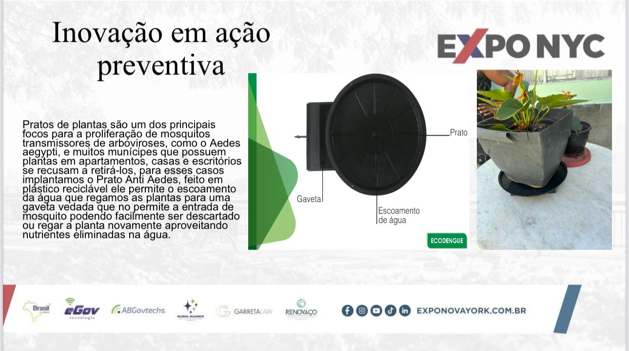Em dezembro de 2024, nossa solução foi destaque na EXPO NYC, em Nova York, como exemplo de inovação preventiva contra o Aedes Aegypti.